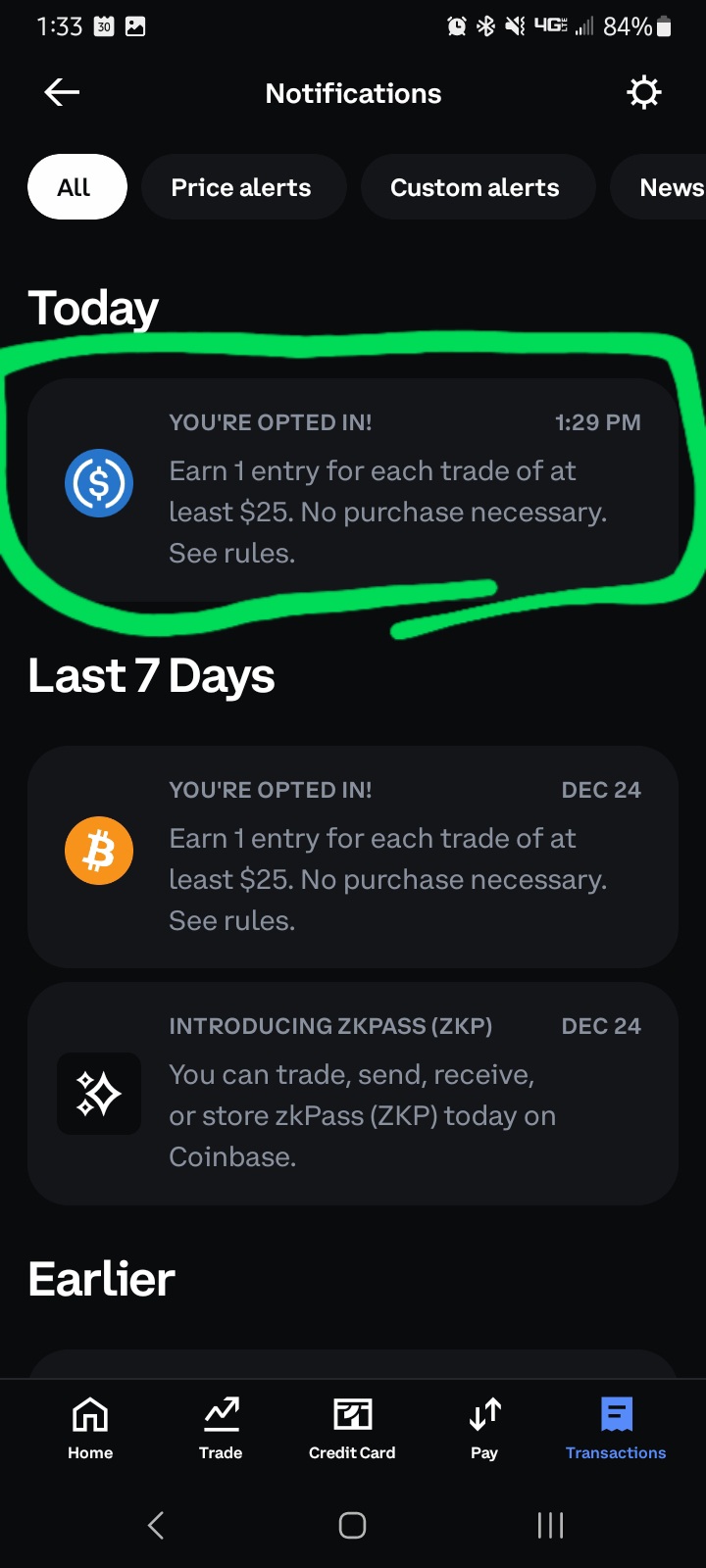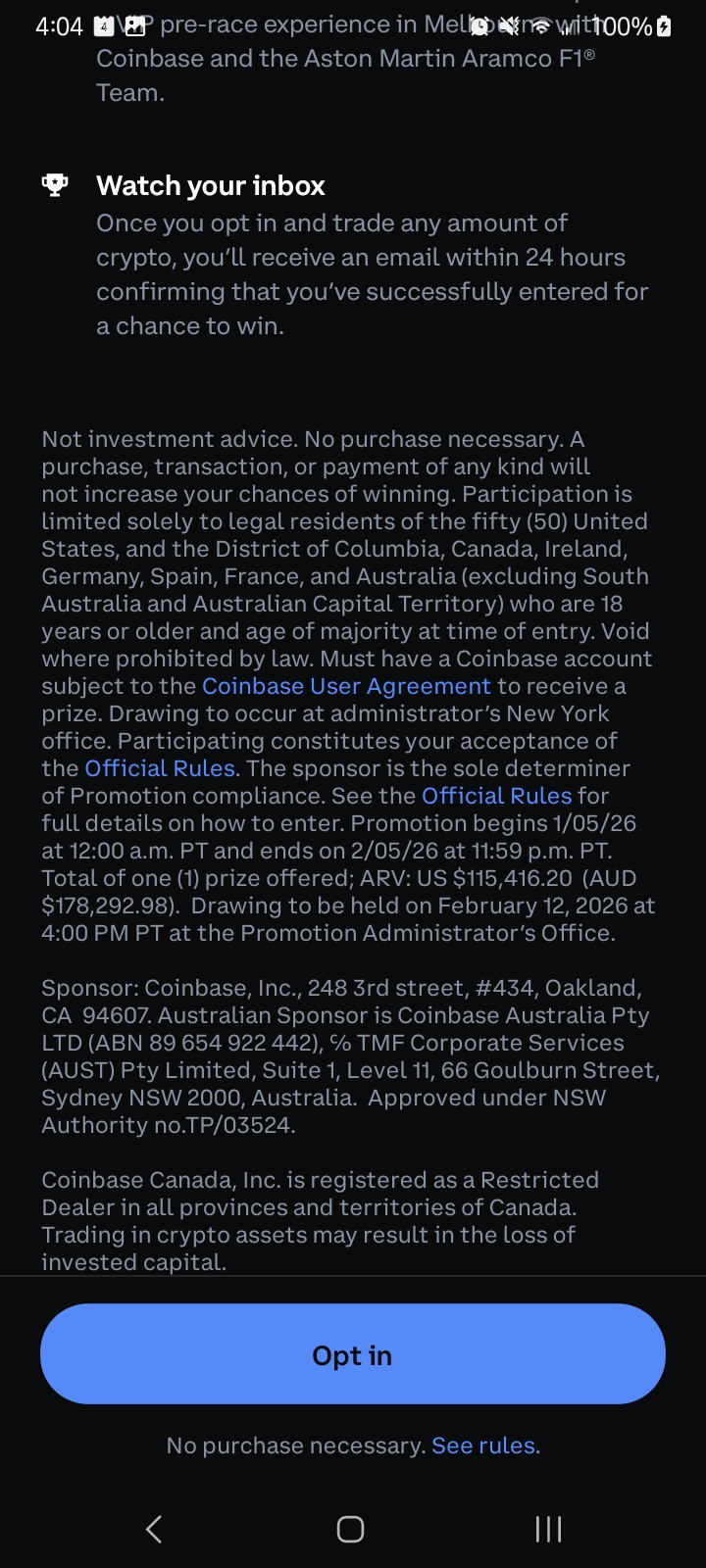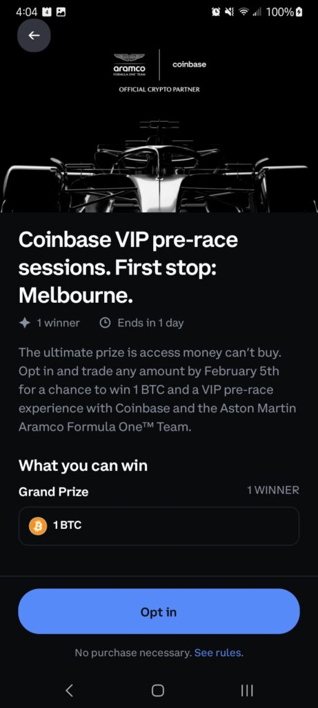 The app wouldn’t allow a screenshot due to security settings, so you can opt in via 1) the email you may get .. 2) the pop up prompt when you open the app, or 3) there’s a slider tab on the app/website that has various promotions that should show the contest. Hope that helps!