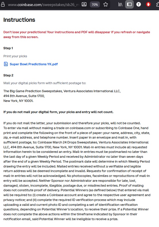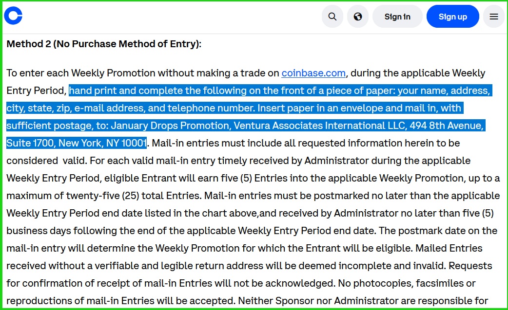 There’s also an Alternative Method of Entry (AMOE) where you can mail in an entry: