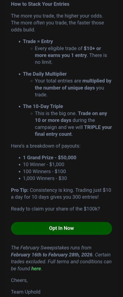 Check out the Uphold $100,000 February Sweepstakes & enter while you still have time: