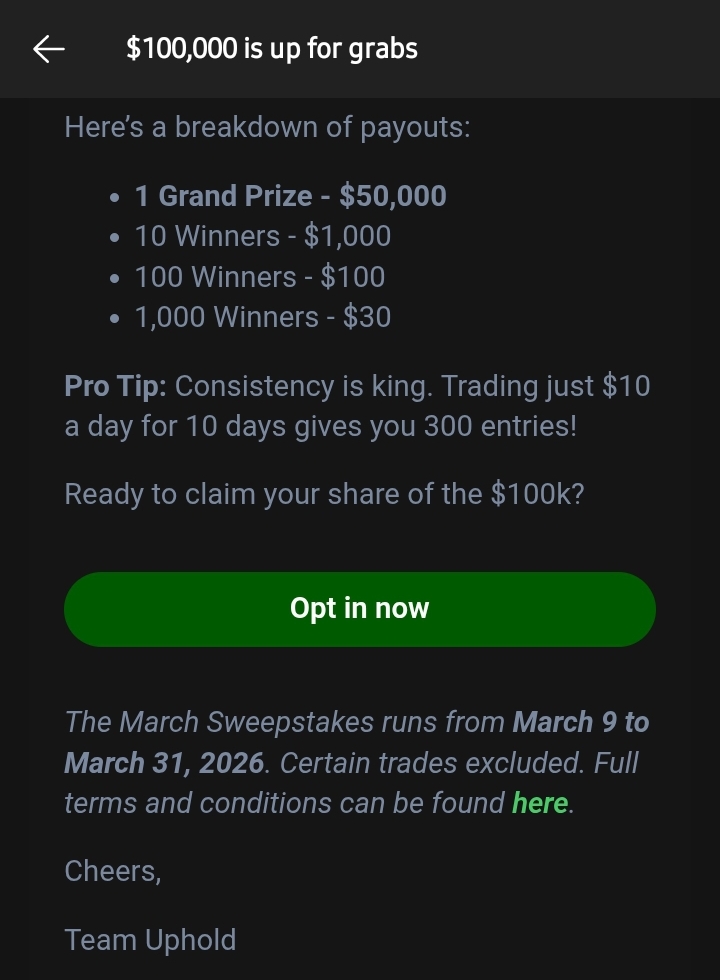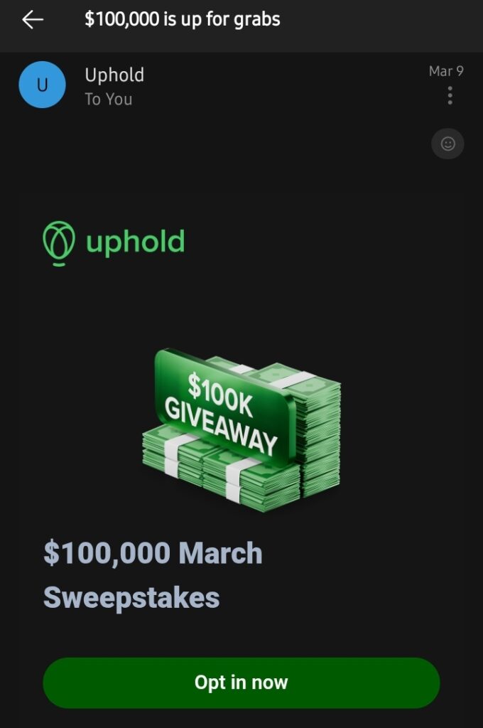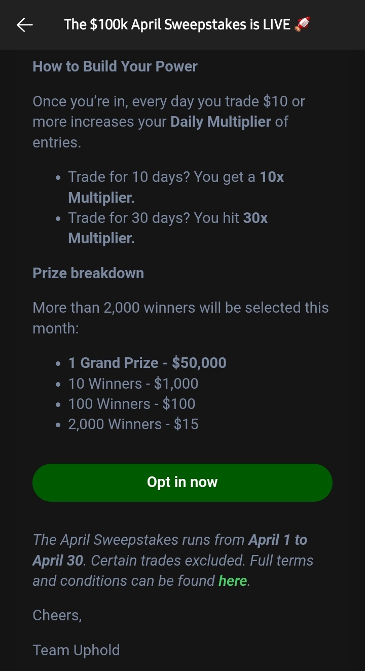 Check out the Uphold $100,000 April Sweepstakes & enter to win your share: