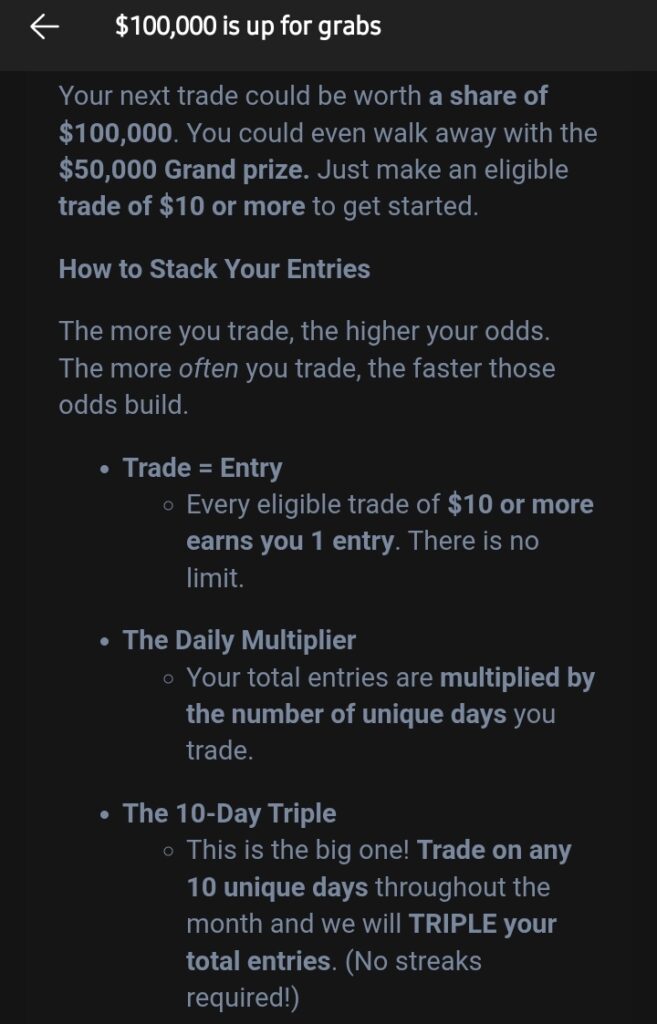 So, when logging in with the app there was an opt-in box worth 1 entry to start. The postcard method is worth an additional 201 entries this month and gets you entered in the contest without having to pay for extra trades if you don’t want to…